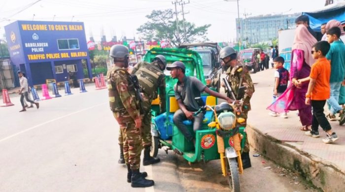 ঘোষিত লকডাউন ও সম্ভাব্য নাশকতা প্রতিরোধে কক্সবাজারে সেনাবাহিনীর বিশেষ অভিযান চলছে। বৃহস্পতিবার সকাল থেকে সেনা সদস্যরা শহর ও আশপাশের গুরুত্বপূর্ণ এলাকাগুলোতে টহল জোরদার করেছে। জানা গেছে, কক্সবাজার শহরের কলাতলী মোড়,