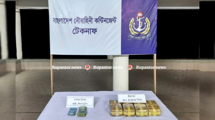 টেকনাফে বাংলাদেশ নৌবাহিনী ও মাদকদ্রব্য নিয়ন্ত্রণ অধিদপ্তরের যৌথ অভিযানে ইয়াবা ও নগদ অর্থ উদ্ধার করা হয়েছে। বুধবার (১২ নভেম্বর) দিবাগত রাতে এসব ইয়াবা ও নগদ অর্থ উদ্ধার করা হয়। প্রেস